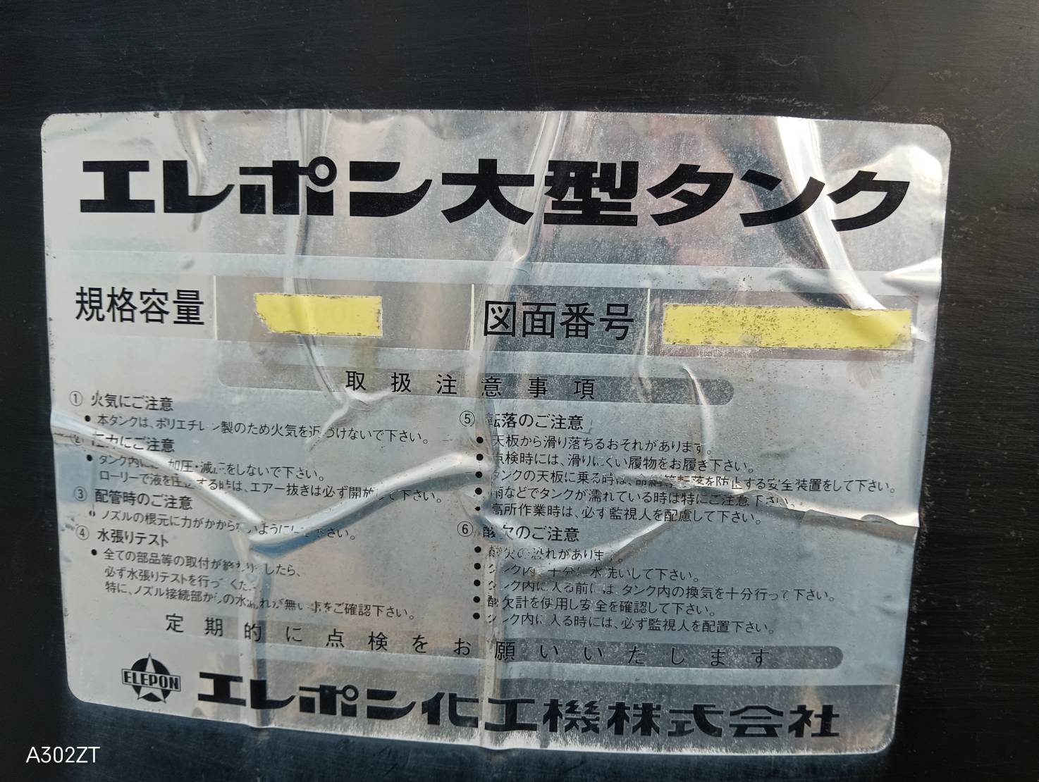 [エレポン化工機] 3000L PPタンク